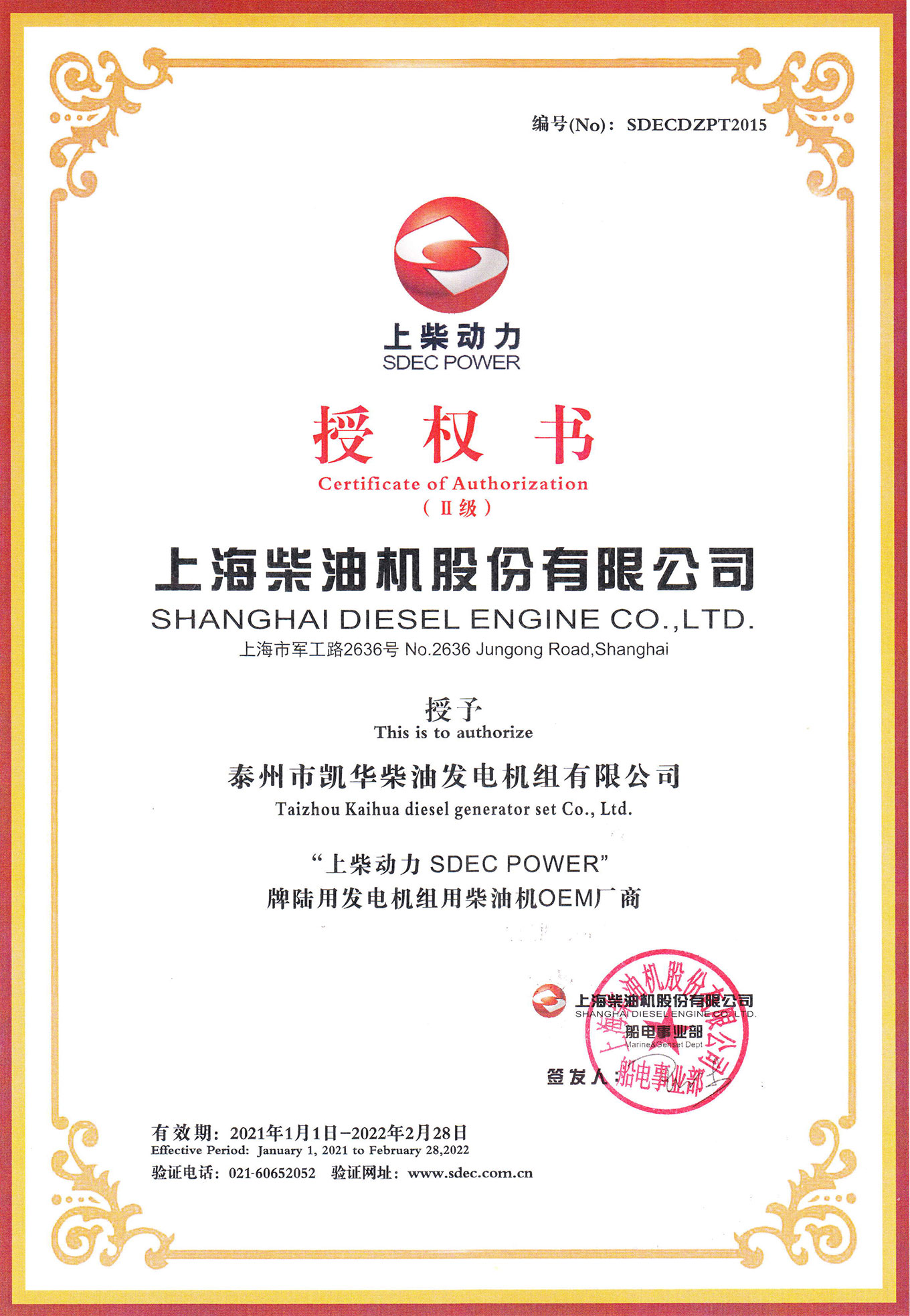 上柴OEM證書