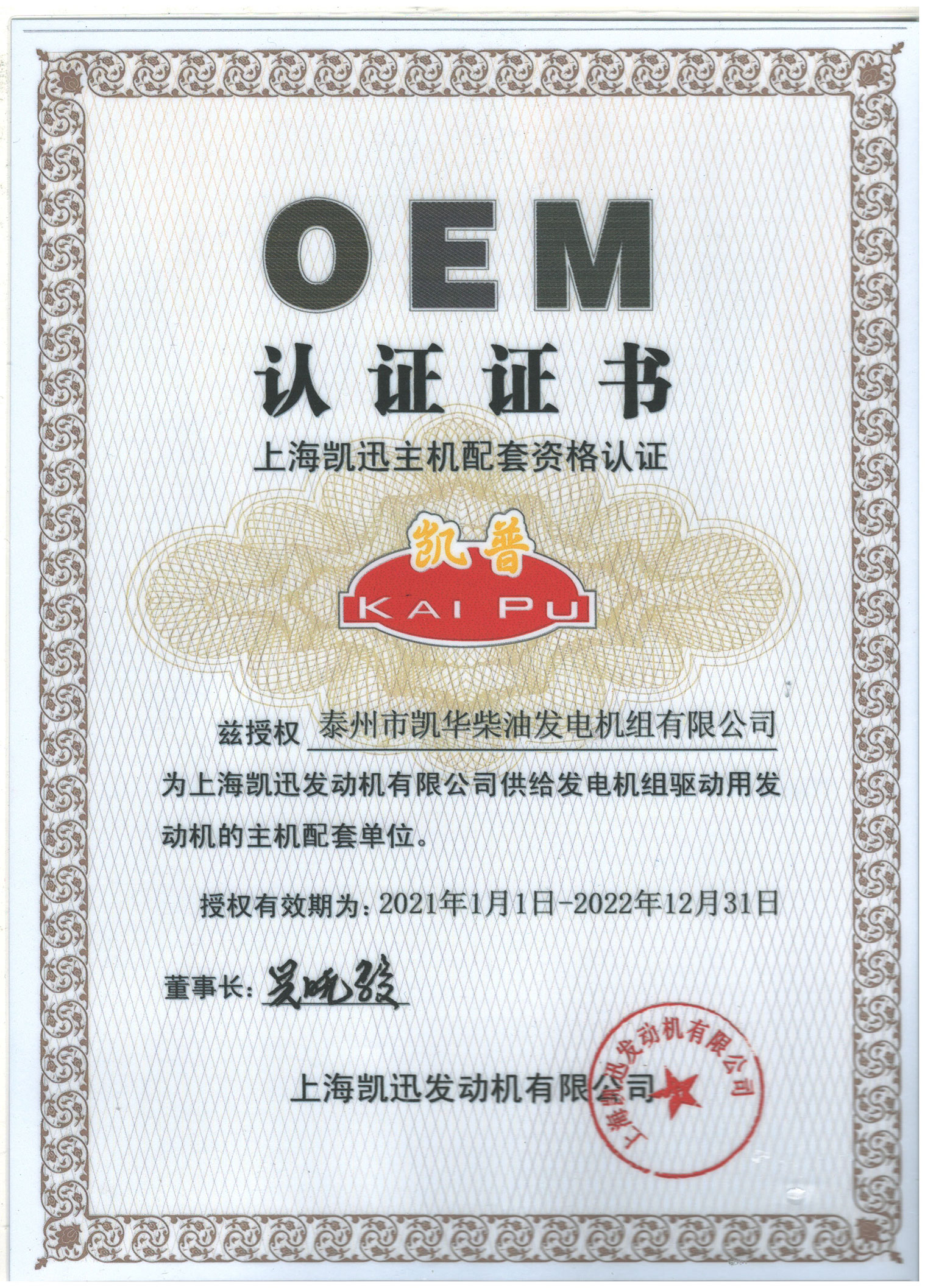 凱迅OEM證書