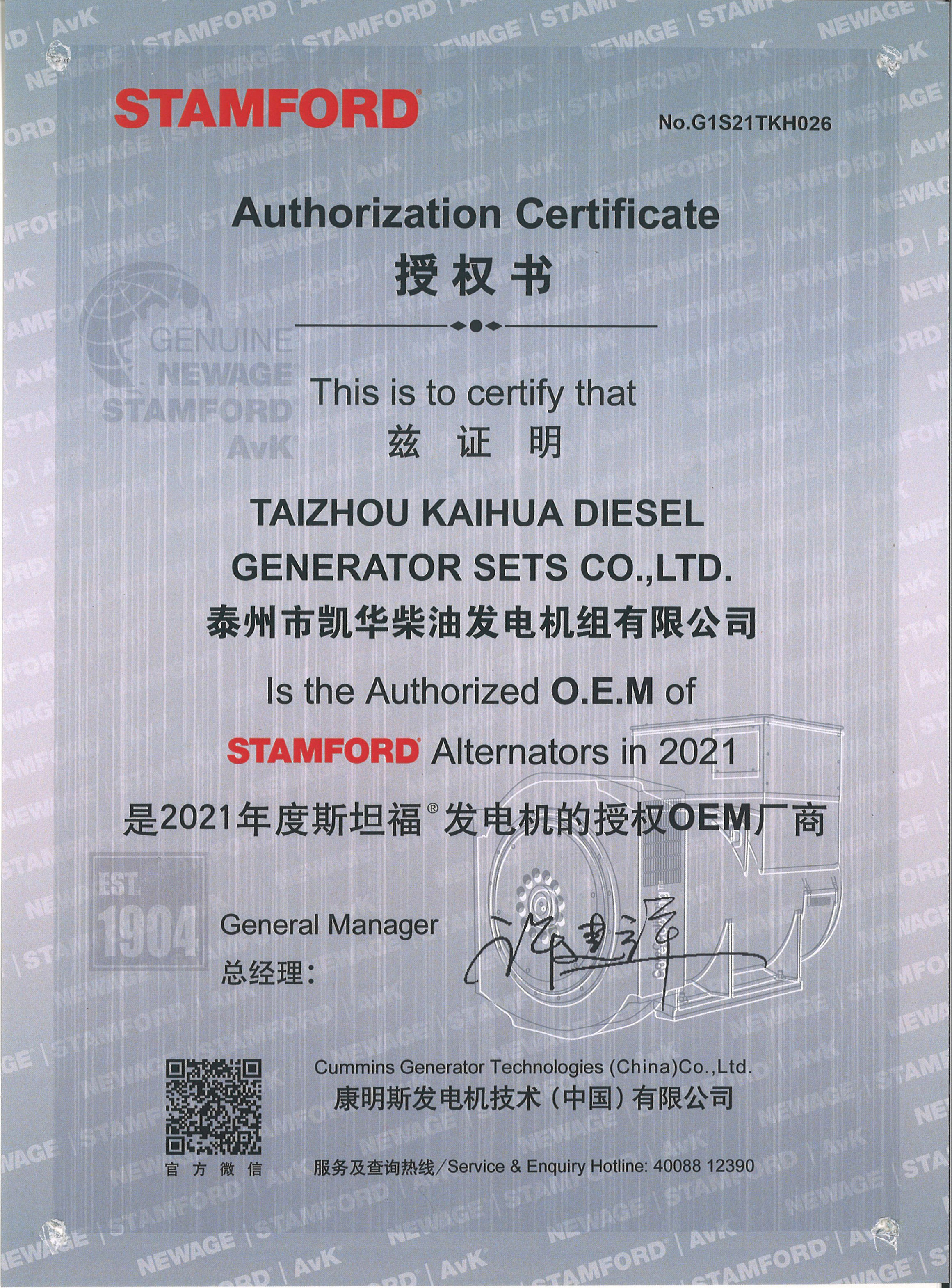 發(fā)電機組廠家凱華公司已先后通過ISO9001質量認證、泰爾認證、ISO14001-2001環(huán)境管理體系認證、GB/T28001-2001職業(yè)健康安全管理體系認證,歐盟CE認證、SGS認證等。